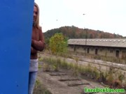 Девушку в черном костюме ебут раком на...